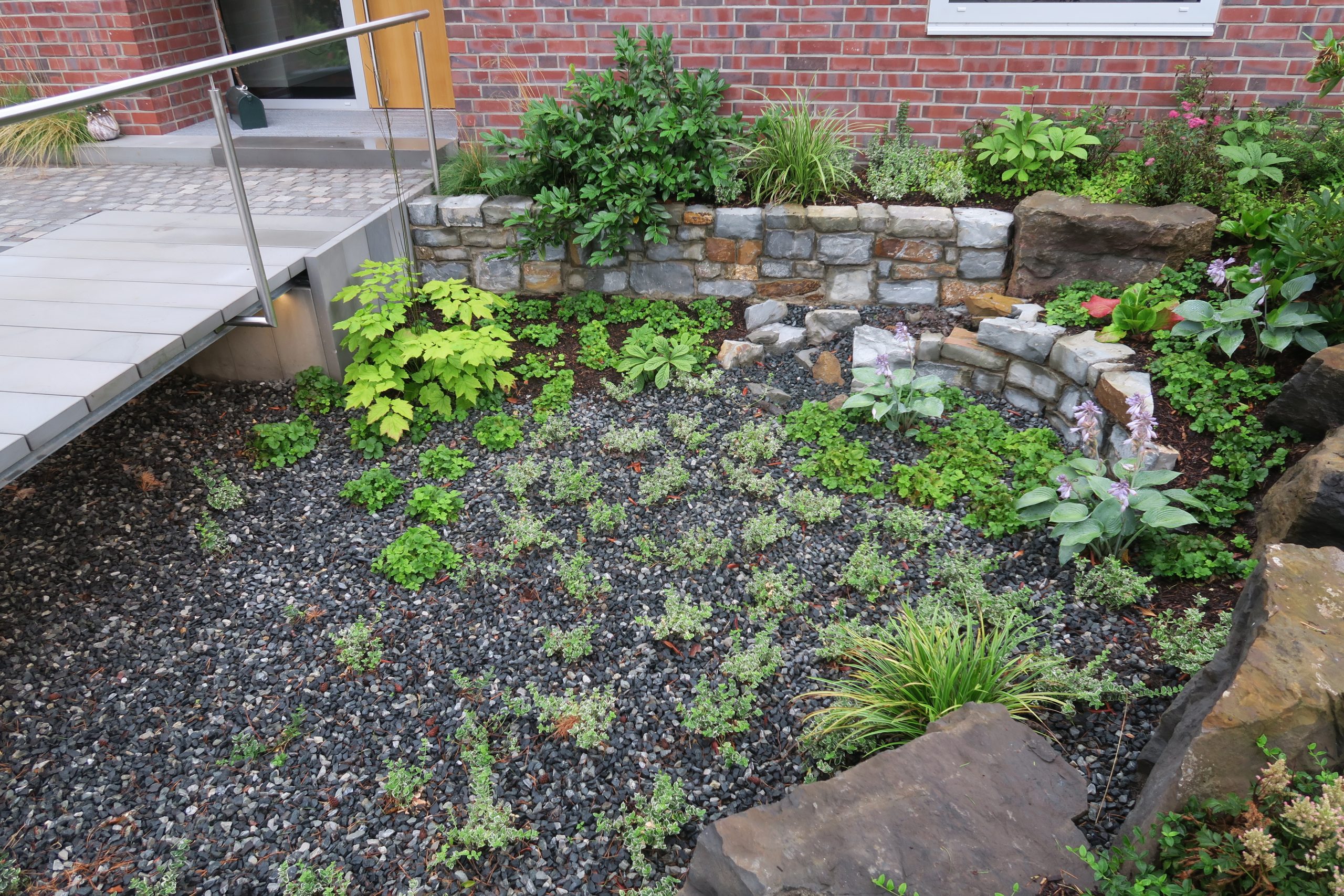 Gestalterisch lässt sich das Thema Regenwasserspeicherung, Versickerung aber auch Drosselung großartig mit in die Gartengestaltung einbinden, soweit der Raum zur Verfügung steht. Doppel- oder Mehrfachnutzung eines Gartenraumes wäre hier die Lösung.